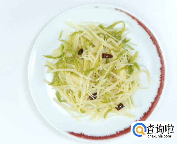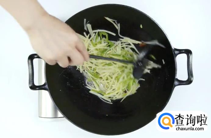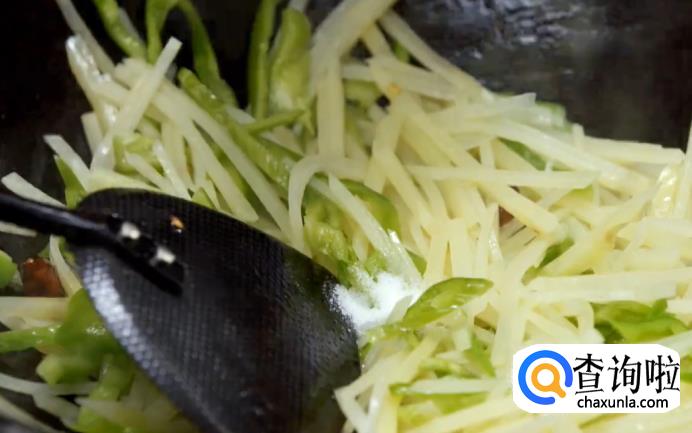 下青椒丝,土豆丝煸炒。