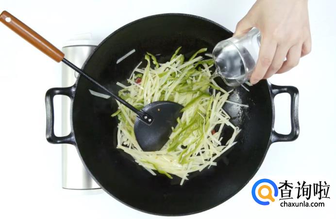 接着加少许白醋,炒匀。