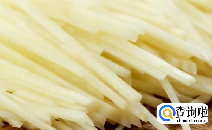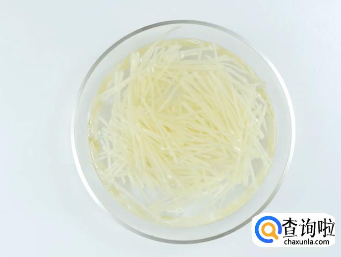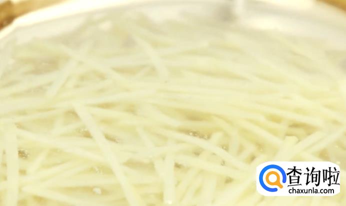 接着把土豆丝焯水到半熟状态。