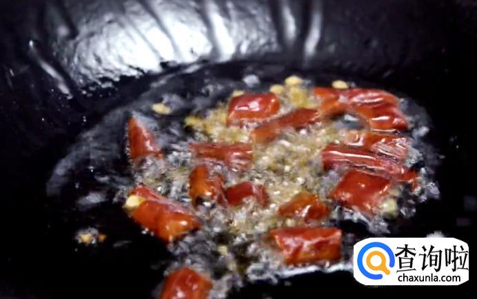 接着放干辣椒煸出辣味。