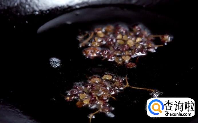 接着把干花椒热油爆香,之后捞出。