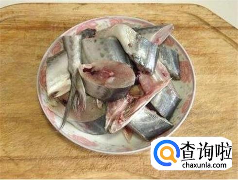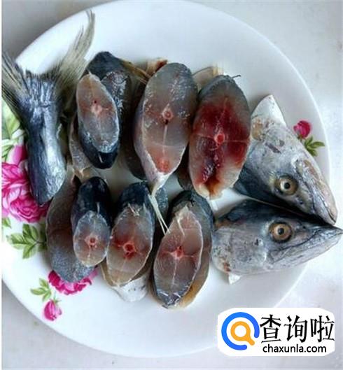 买回来的鲅鱼一般都是冰冻的,先解冻,然后清洗干净鱼肚子,再切小块。