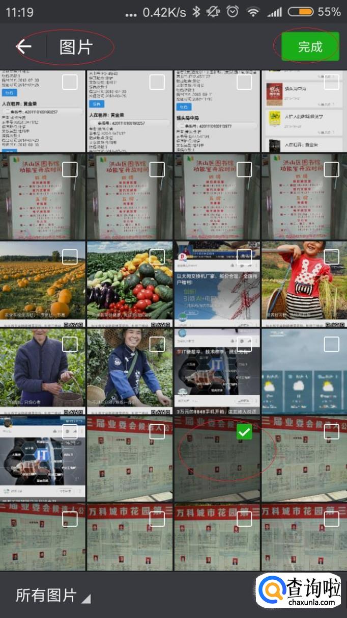 如图所示,唤出"图片"选项。垂直滑动选项界面,勾选所选图片复选框、点击右上侧"完成"按钮。