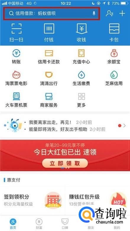 首先在我们的手机桌面上找到支付宝并点击它,如下图所示。