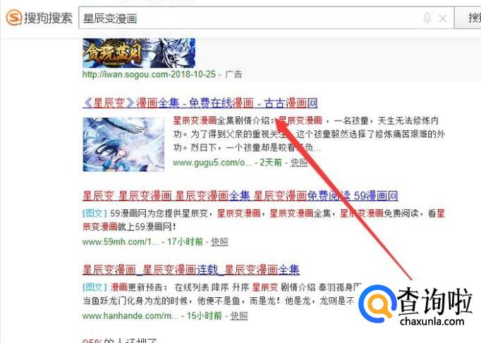 进入之后,搜索“星辰变漫画”,点击并进入,如图所示。