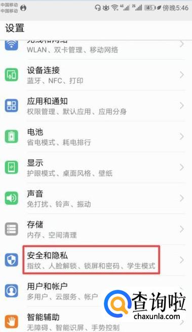 弹出的界面,我们点击安全和隐私;