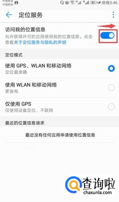 弹出的界面,我们将访问我的地理位置的开关向右滑动打开;