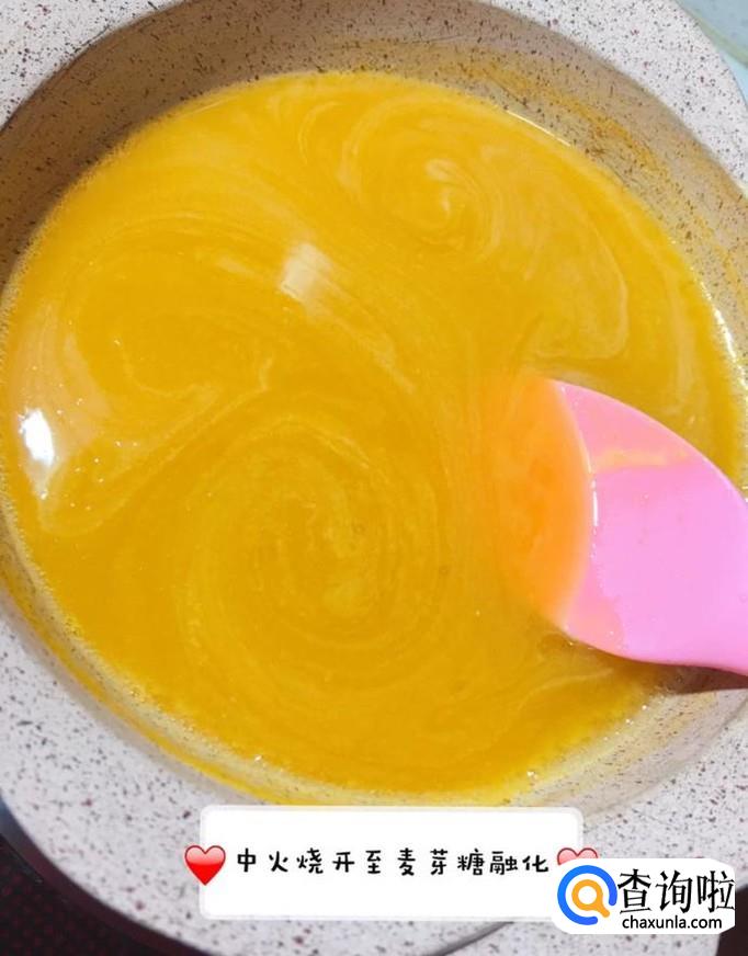 然后开中火熬到麦芽糖完全溶化,如下图所示。