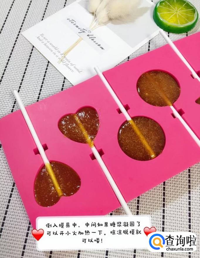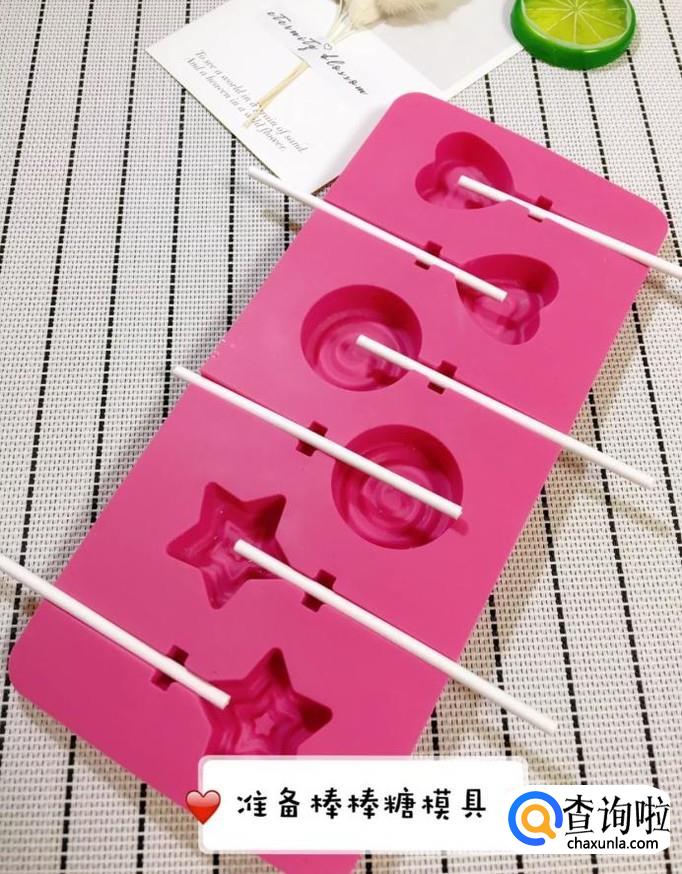 然后准备好棒棒糖模具,如下图所示。小贴士:棒棒糖模具上刷上油并摆上竹签。