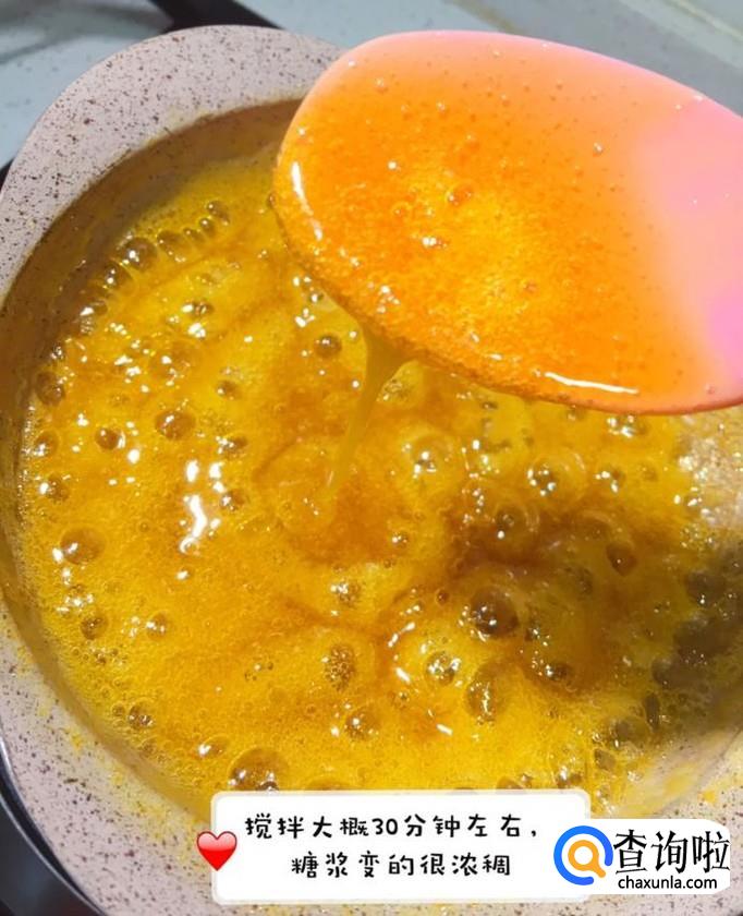 坚持这个过程大概30分钟左右,这时候糖浆就会变得非常浓稠。