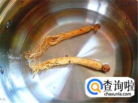 将人参浸泡在没有油污干净的水盆里,不要用手碰,因为干的人参须子是很容易碎的。