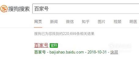 打开搜狗浏览器,在搜索框中输入“百家号”,点击百家号的官网进入新的连接。