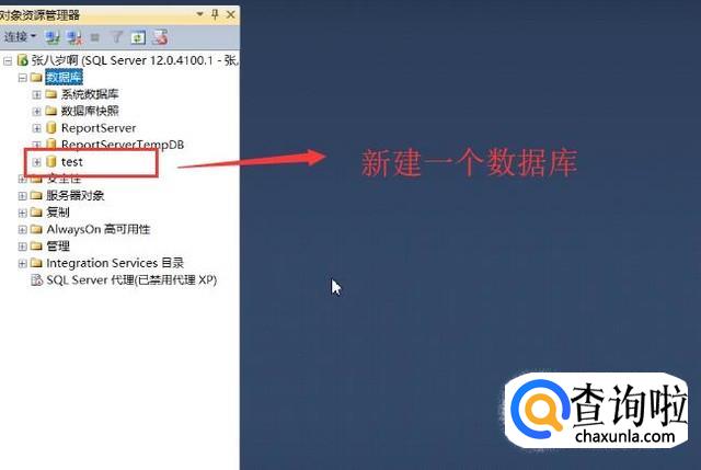 首先我们打开SQL Server数据库,新建一个测试数据库,如下图所示