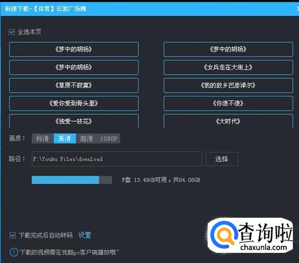 在下载对话框中,勾选下面的“下载完成后自动转码”,然后点击旁边的“设置”。