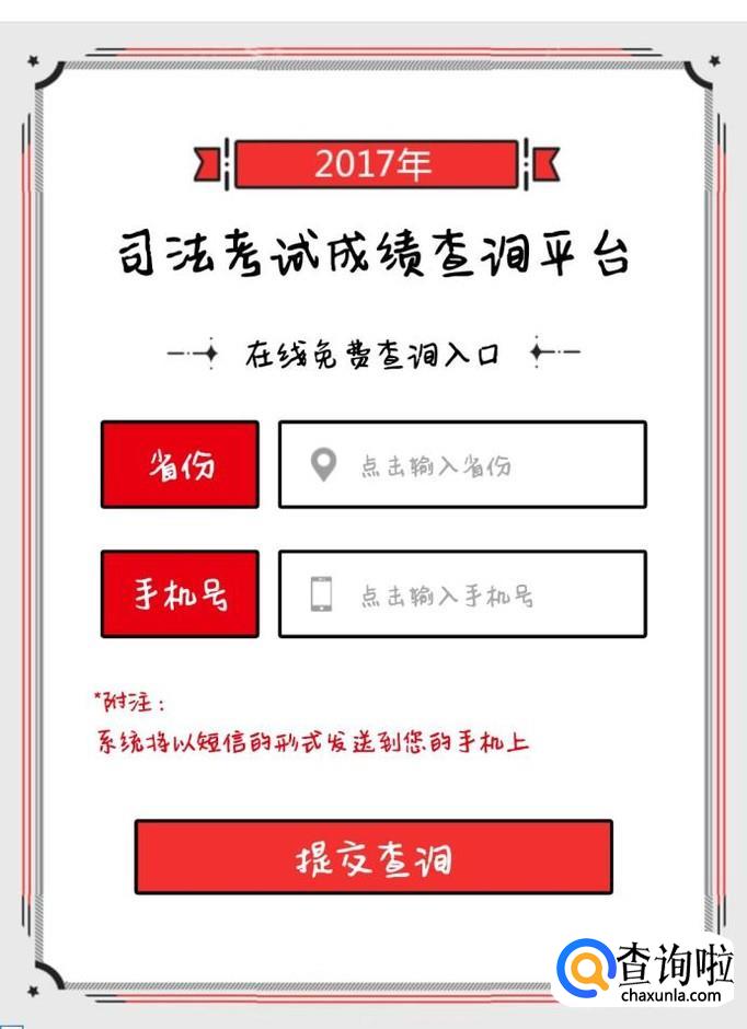 点击国家司法考试后就会进入如下图所示的页面,按照页面上的提示输入信息,然后等待考试结果就行了。