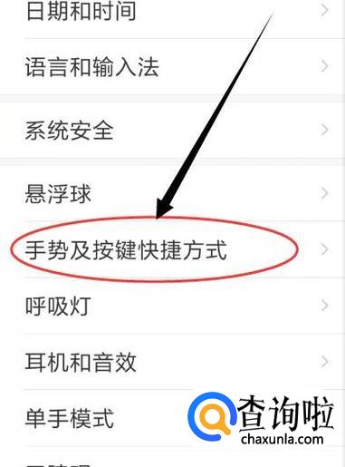 进入之后,找到“手势及按键快捷方式”,点击并进入。