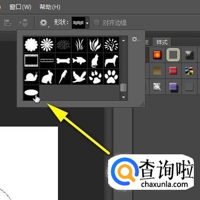 我们按U键,调出自定形状工具,再点开自定形状面板,在其中就有此椭圆形状。