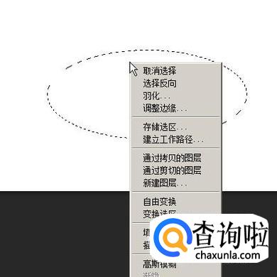 在右键菜单中点“建立工作路径”;弹出一个对话框,直接点确定。那么,这个选区即转为路径。