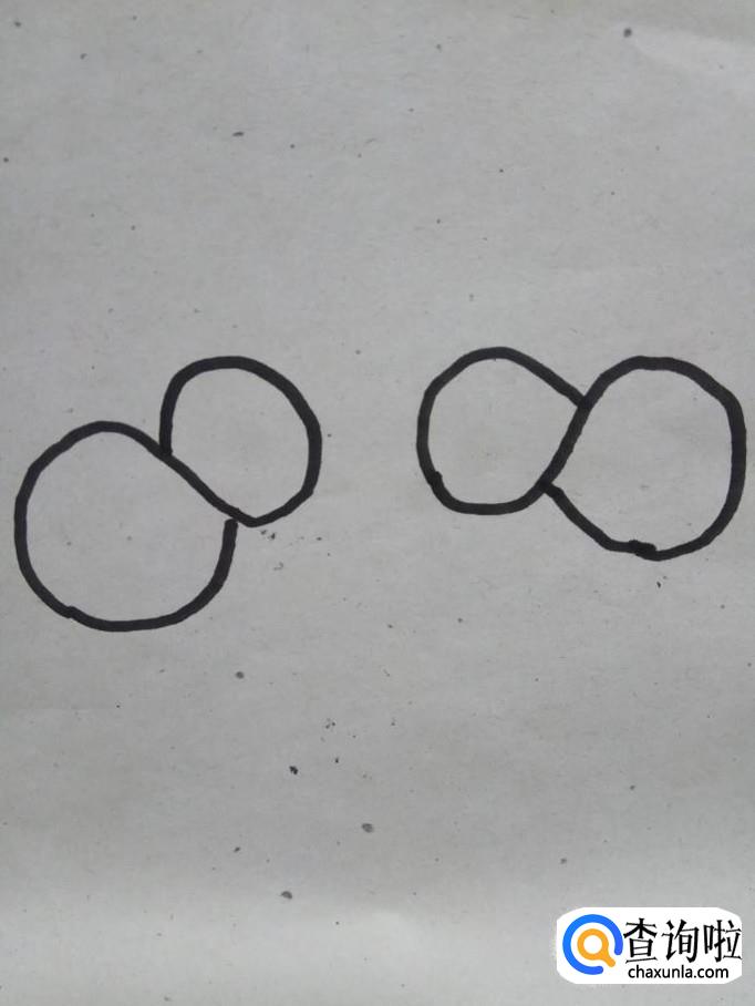 在白纸上画出两个数字8,两个数字8的中间部分稍微粗一点。这是小鸡头和身体。
