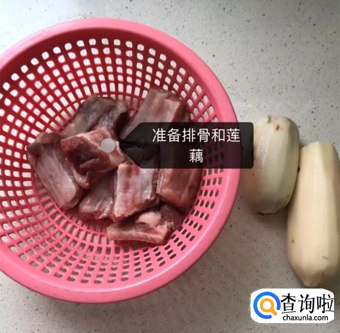 首先准备好要用的排骨和莲藕,如下图所示。小贴士:将买回来的排骨切成段;莲藕去皮洗干净。
