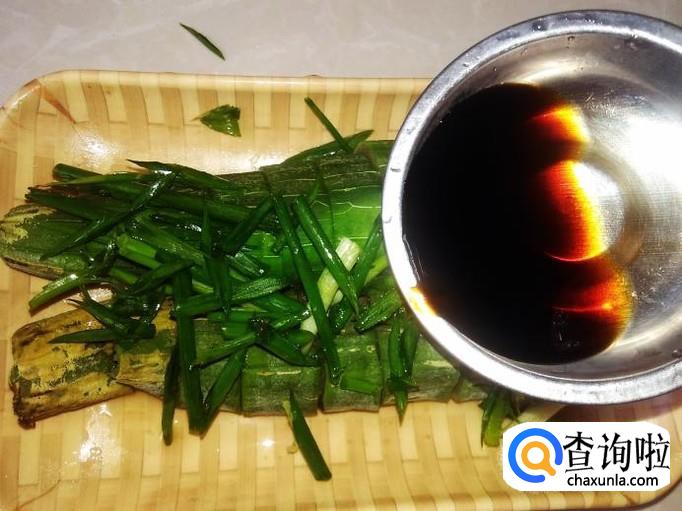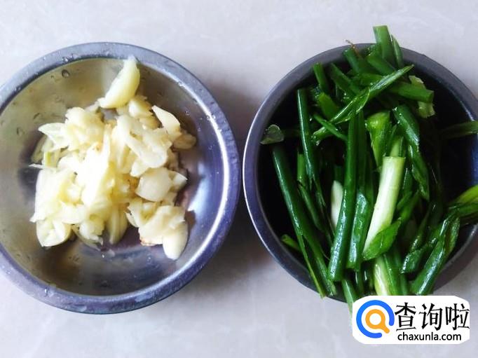烤的期间,做好调料,蒜米、葱丝准备好。