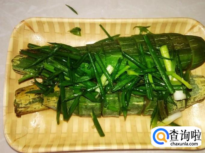 把葱丝铺在丝瓜面上,再浇1勺生抽在面上。