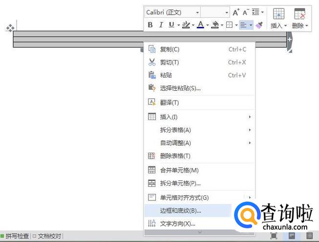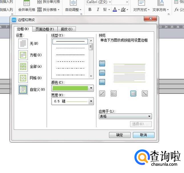 再次选中表格,点击鼠标右键,选择“边框和底纹”进入,进入后选择“边框”选项卡,设置颜色,将左右两边的线条去掉,点击确定。