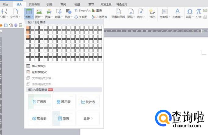 打开word文档,新建一个空白的文档,点击“插入——表格”。