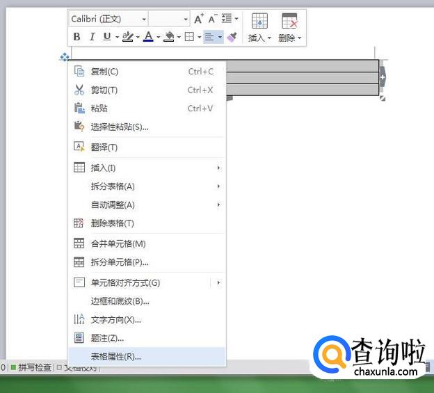 插入表格选择3行1列,插入后,选中表格,点击鼠标弹出对话框,选择“表格属性”进入。