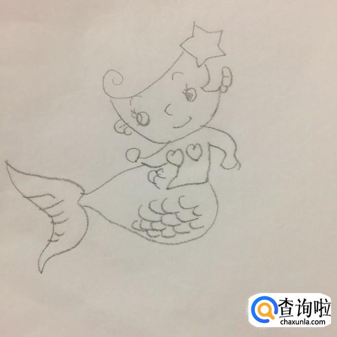 最后画出美人鱼公主旁边的星星和海藻还有贝壳等。这样一幅美人鱼公主就画好了,希望大家能够喜欢。