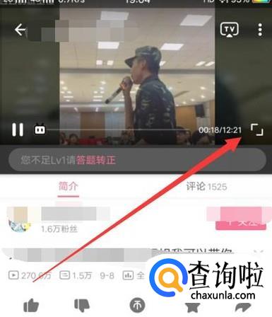 进入之后,点击图示位置将其设置为全屏播放,如图所示。