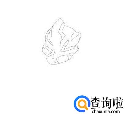 再在头部的轮廓上画出梦比优斯奥特曼的眼睛鼻子和嘴巴,如图所示: