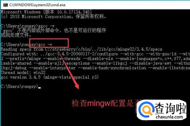 最后打开CMD命令行,输入gcc -v命令查看mingw是否配置成功,如果出现如下图所示的信息则代表配置成功