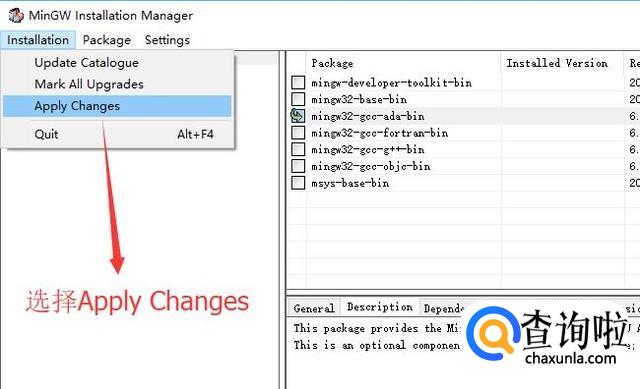 然后点击左上角的Installation菜单,在下拉菜单中选择Apply Changes选项,如下图所示
