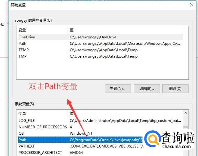 在环境变量界面中我们找到Path环境变量并双击它,如下图所示