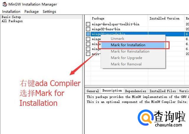 接下来就跳转到安装管理器界面了,我们选择右侧第三个选项,右键单击选择Mark for Installation选项,如下图所示