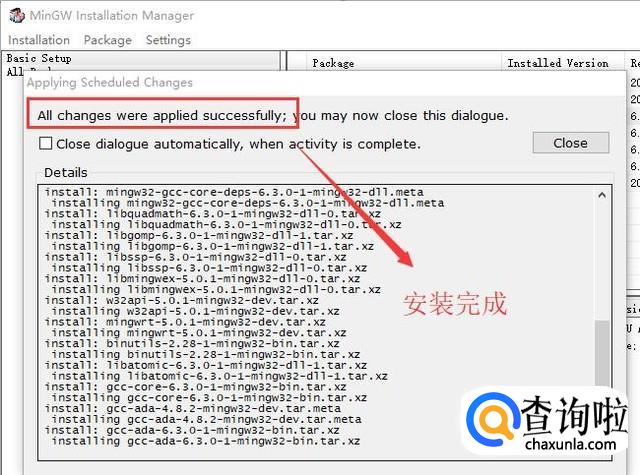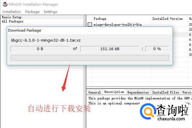接着MinGw相关的包以及程序就会进行下载以及安装了,如下图所示
