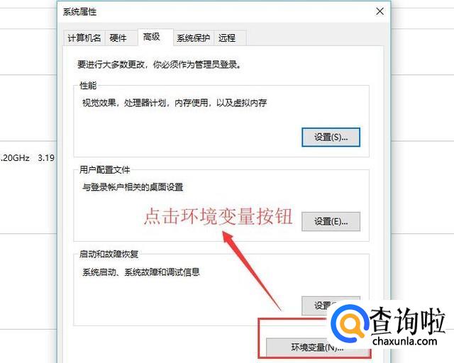 接下来我们打开系统属性界面,点击底部的环境变量按钮,如下图所示