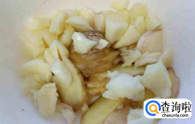 把蒜和姜切片,准备适量的醋,白糖和盐,一起加入锅中,大火烧开转小火熬制3分钟左右。然后放在一旁晾凉。
