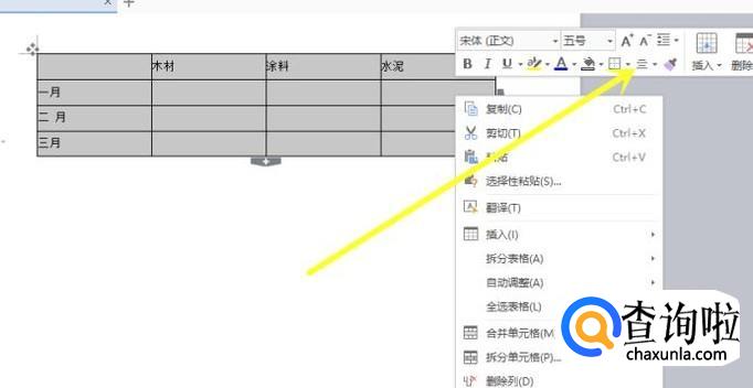 然后再次选中全部表格,点击鼠标右键,选择如图所指的位置的小三角形