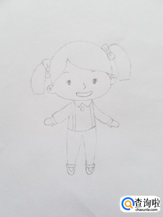 我们接着画出小女孩的下半部分,包括两双手,裤子,鞋子等