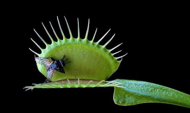 捕蝇草是所有食肉植物中最著名的,因为其独特的诱捕器具有活跃和高效的特性。它可能很有名,但也受到威胁。这种植物的两片铰接的叶子上覆盖着超灵敏的细毛,这些细毛能检测出从蚂蚁到蜘蛛等一切生物的存在。触发头发就像开启开关一样,陷阱会在不到一秒钟的时间内关闭。