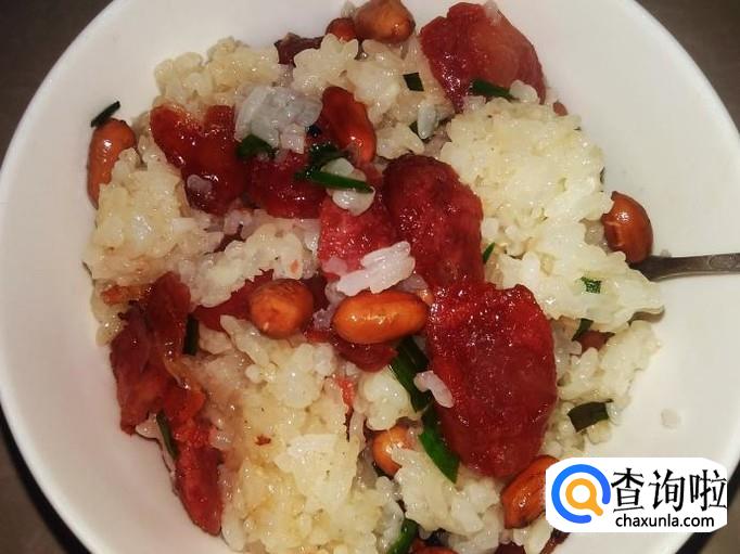 糯米300克,香肠100克,花生100克,青蒜适量。
