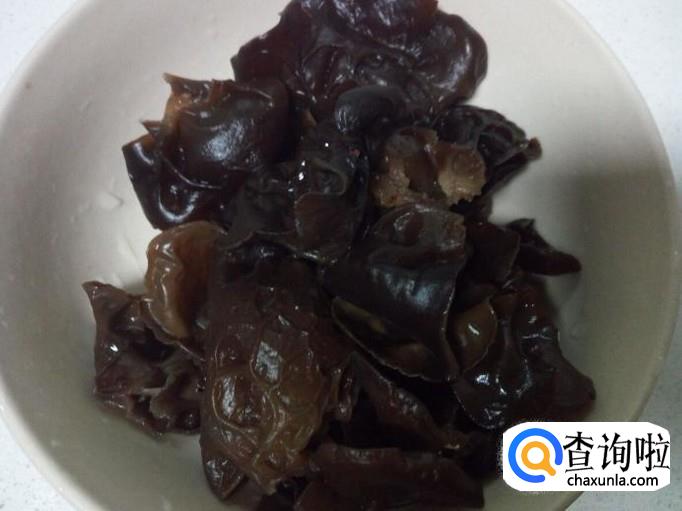 用温水快速泡发木耳,把泡发好的木耳收拾清洗干净,控干水分。