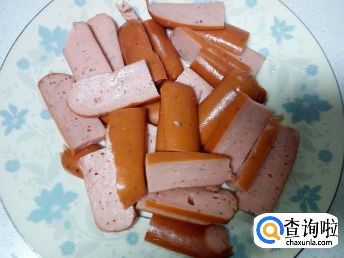 脆皮肠去掉外包装,用到切成片。