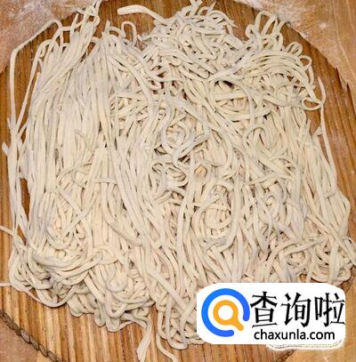 切好后把最上面两层向前翻开,握住面条一边撒干面粉一边轻轻抖散即可