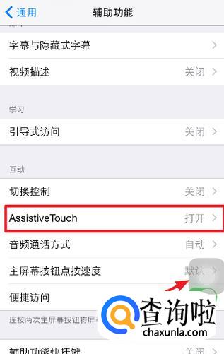 找到“辅助功能”中的“AssistiveTouch”,打开它。开启“AssistiveTouch”后,界面会多出一个“小圆点”。