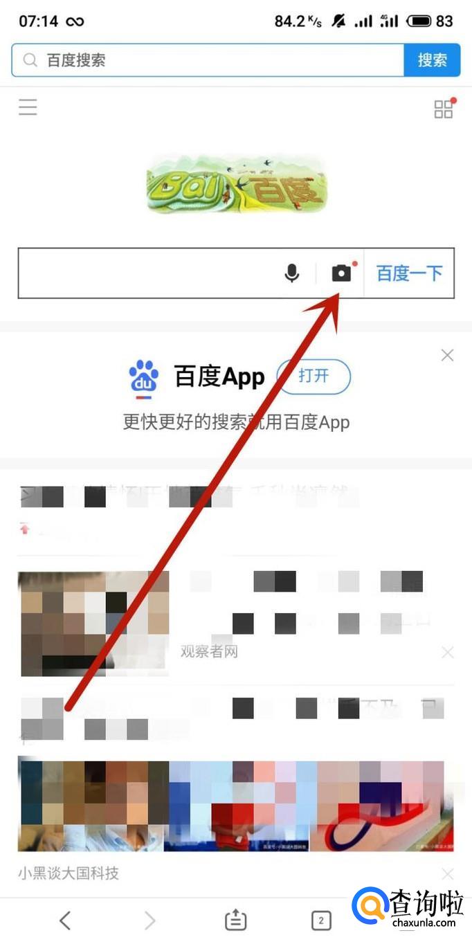 在百度首页面,点击搜索框里的相机图标。