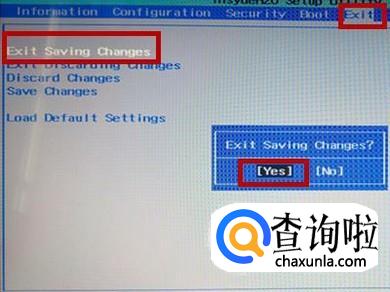 使用向右的箭头移动到”exit“,然后选择“exit saving changes" ,点击”yes“即可。