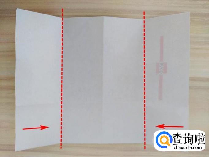 沿着虚线将左右两个边向中线折叠;